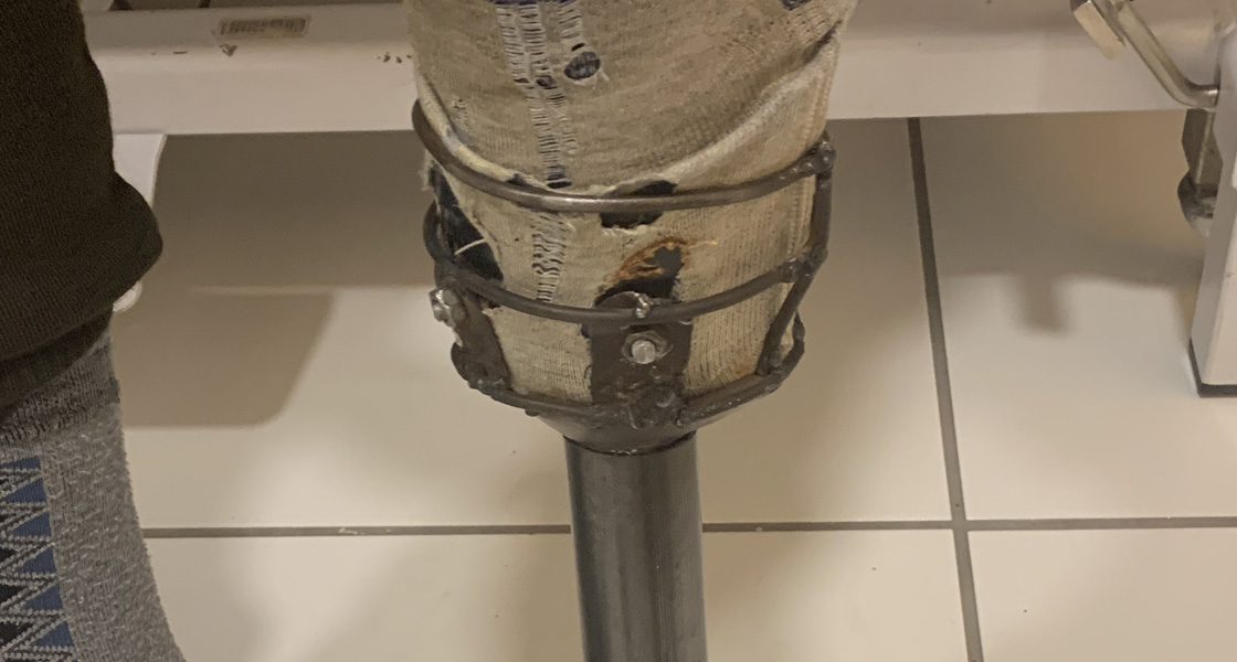 Er versuchte, mit einer selbstgebauten Prothese zu leben, aber es war mühsam und schmerzhaft.