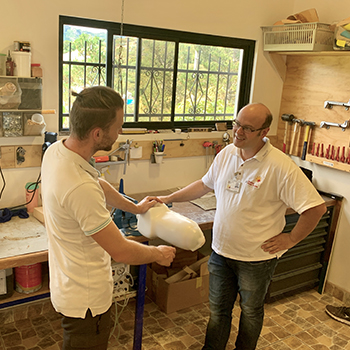 Christian Haupt und Daniel Müller leiten die Werkstatt und fertigen Prothesen und Orthesen für Menschen mit Behinderungen.